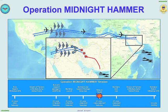 37 ώρες υπολογίζεται ότι διήρκεσε η πτήση των Β-2, προκειμένου να καλύψουν τα περίπου 11.400 χιλιόμετρα προς τον στόχο τους και να επιστρέψουν στη βάση τους, στο Μιζούρι των ΗΠΑ.
