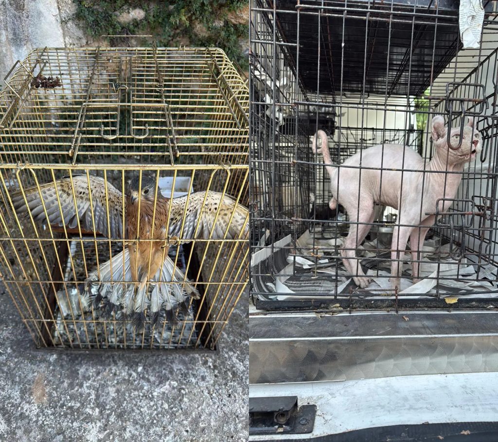 Σε έρευνες που πραγματοποιήθηκαν σε οικία και σχολή εκπαίδευσης σκύλων, εντοπίστηκαν εγκλωβισμένα σε κλουβιά και περισυλλέχθηκαν:
