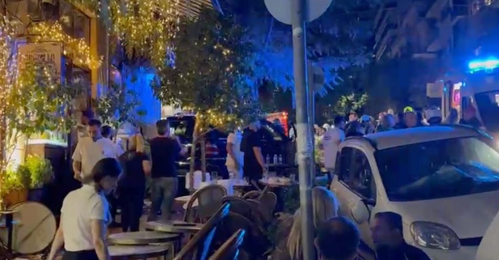 Ακολούθησαν σκηνές τρόμου καθώς το ανεξέλεκτο όχημα, χτύπησε στα τραπέζια και τους ανθρώπους, μέχρι να ακινητοποιηθεί.
