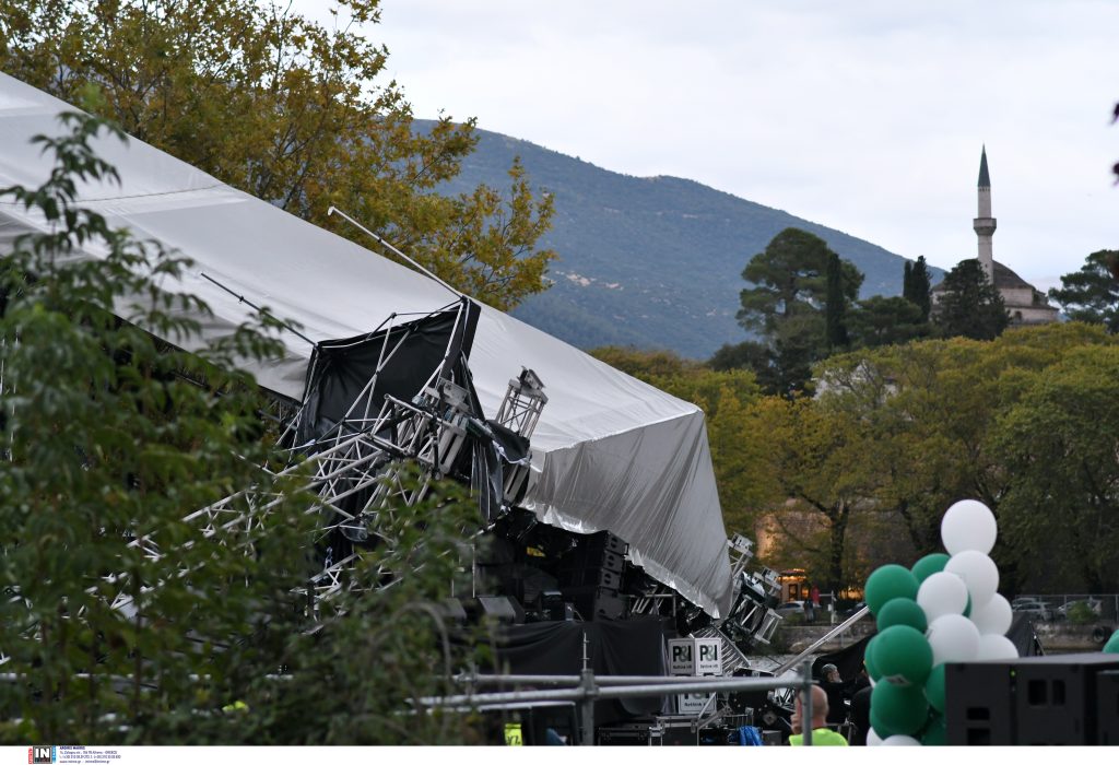 Σε εξέλιξη βρίσκεται στα Ιωάννινα η απομάκρυνση του στεγάστρου της συναυλίας που επρόκειτο να δώσουν Αντώνης Ρέμος, Άννα Βίσση και Μέλισσες καθώς κατέρρευσε το απόγευμα του Σαββάτου από τους ισχυρούς ανέμους που έπνεαν στην περιοχή.