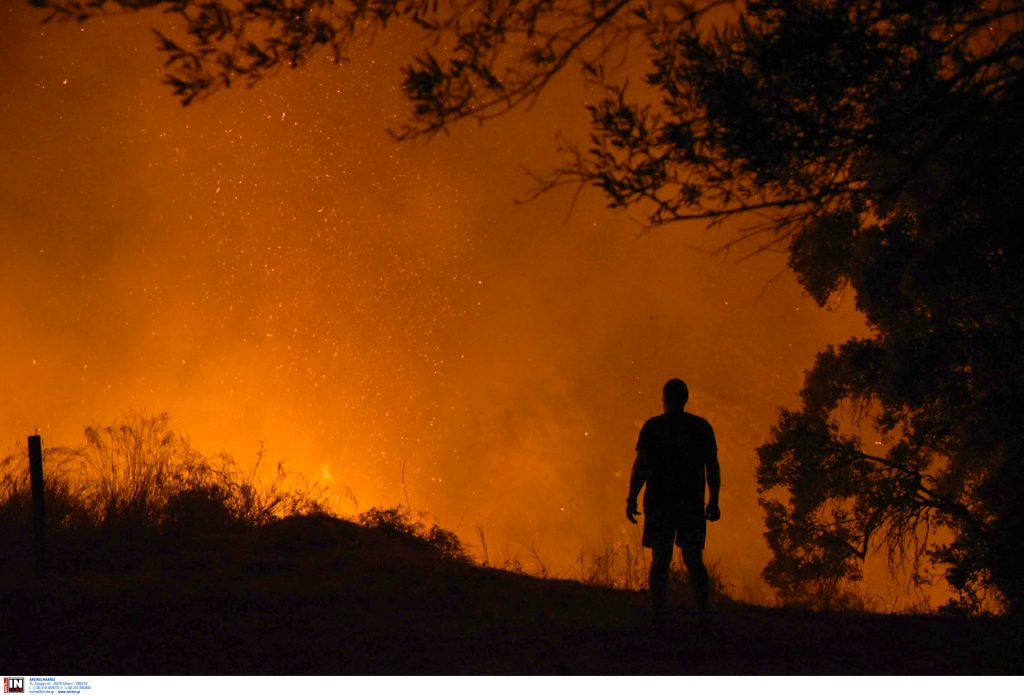 Η κατάσταση χαρακτηρίζεται κρίσιμη, καθώς ισχυροί άνεμοι και υψηλές θερμοκρασίες δυσχεραίνουν το έργο των πυροσβεστικών δυνάμεων.
