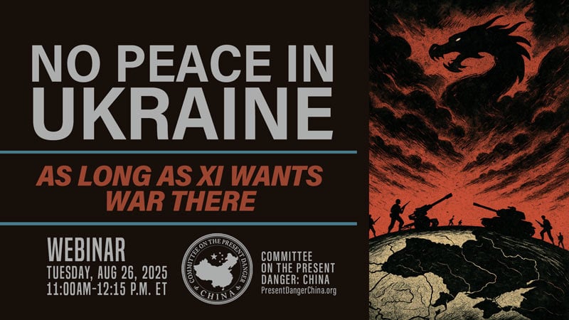 The Committee on the Present Danger: China (CPDC) holds a webinar at 11 a.m. ET on Aug. 26 titled “No Peace in Ukraine As Long As Xi Wants War There.” The event examines the Chinese Communist Party’s role in Russia’s war on Ukraine, why communist leader Xi Jinping is intent on perpetuating the conflict, and whether peace is possible under these conditions.