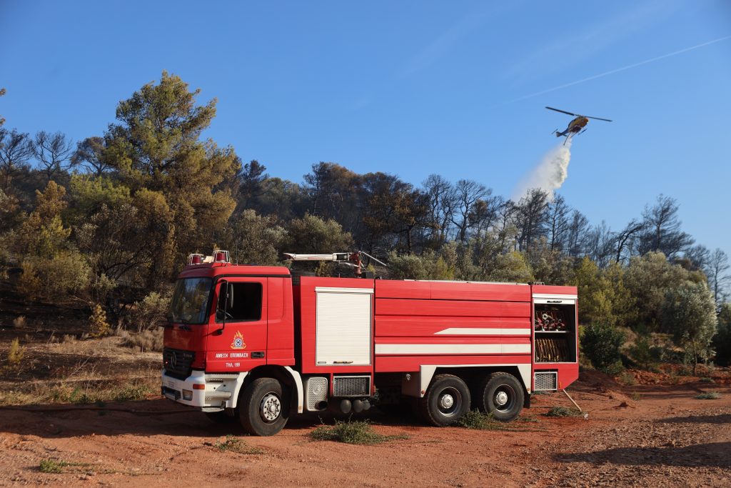 Στο σημείο επιχειρούν 24 πυροσβέστες με 2 ομάδες πεζοπόρου τμήματος της 5ης ΕΜΟΔΕ, καθώς και 6 οχήματα, ενώ από αέρος συνδράμουν 2 αεροσκάφη και 1 ελικόπτερο.
