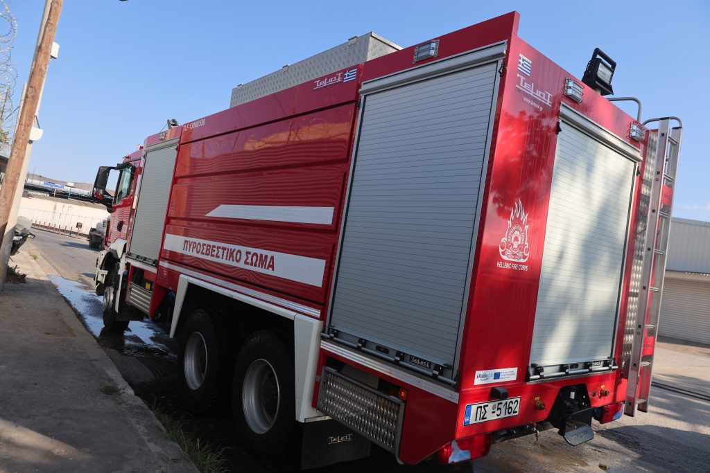 Στο σημείο έχουν σπεύσει και επιχειρούν έξι πυροσβέστες με δύο οχήματα, ενώ η Τροχαία ρυθμίζει την κυκλοφορία.