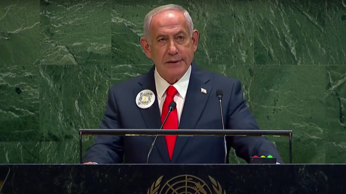 «Πέρυσι σας έδειξαν αυτό τον χάρτη που έδειχνε την πορεία του άξονα του κακού από το Ιράν. Ο άξονας που απειλούσε την σταθερότητα του πλανήτη αλλά και της χώρας μου. Χτυπήσαμε τους Χούθι – ακόμη και εχθές, διαλύσαμε τη Χαμάς, πλήξαμε την Χεζμπολάχ – θα θυμάστε τους βομβητές – πήραν νομίζω το μήνυμα και φυσικά ελέγχουμε την κατάσταση στην Συρία και πάνω από όλα διαλύσαμε το πυρηνικό πρόγραμμα, αλλά και το συμβατικό οπλοστάσιο του Ιράν» είπε στην αρχή της ομιλίας του ο Ισραηλινός πρωθυπουργός, ενώ αξίζει να σημειωθεί πως έδωσε εντολή να στηθούν μεγάφωνα στη Λωρίδα της Γάζας για να ακούγονται όσα λέει.