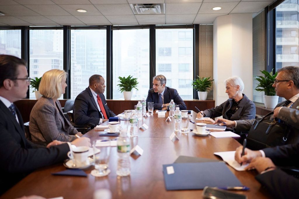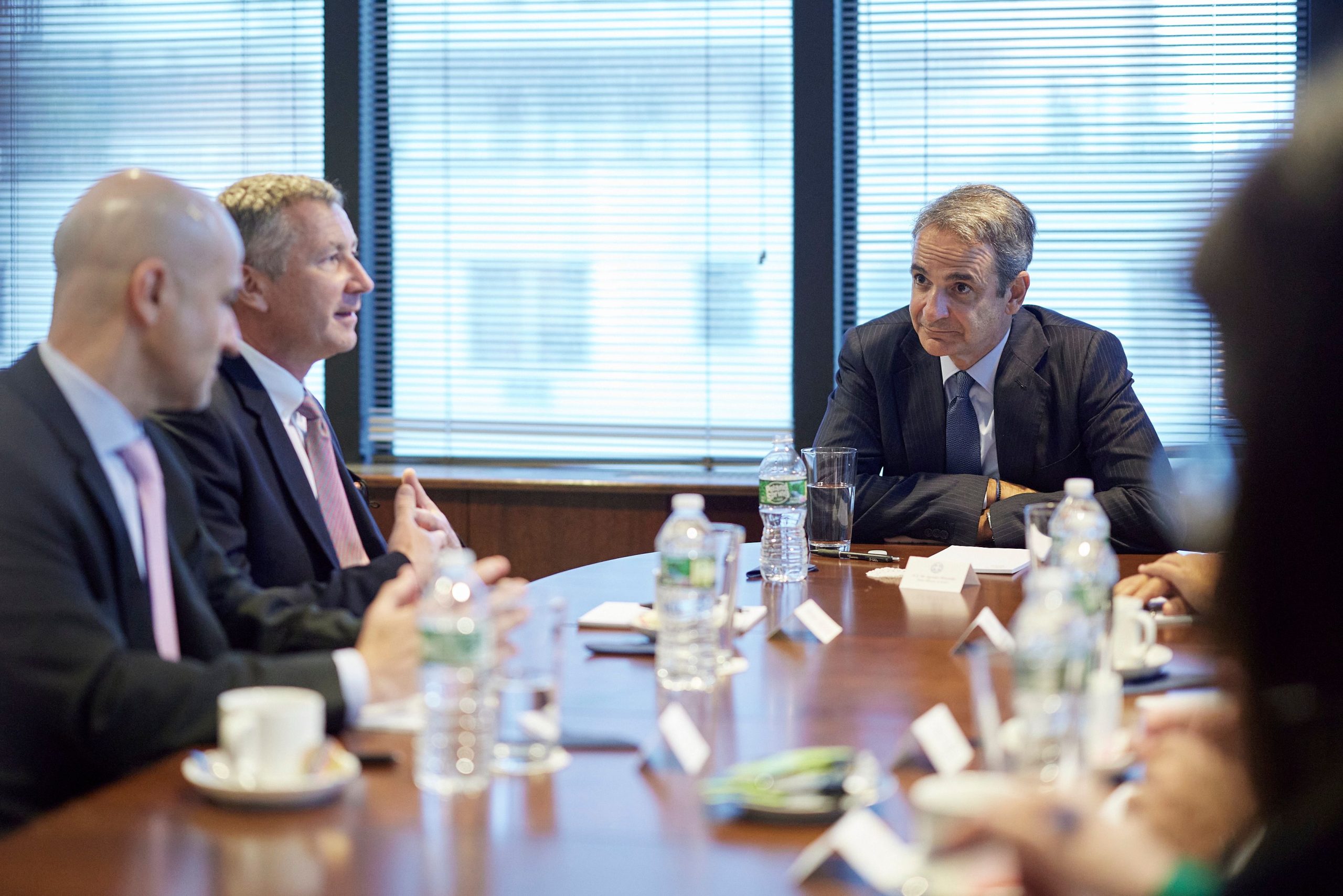 Στιγμιότυπο από τη συνάντηση του Κυριάκου Μητσοτάκη με τους επικεφαλής της ExxonMobil