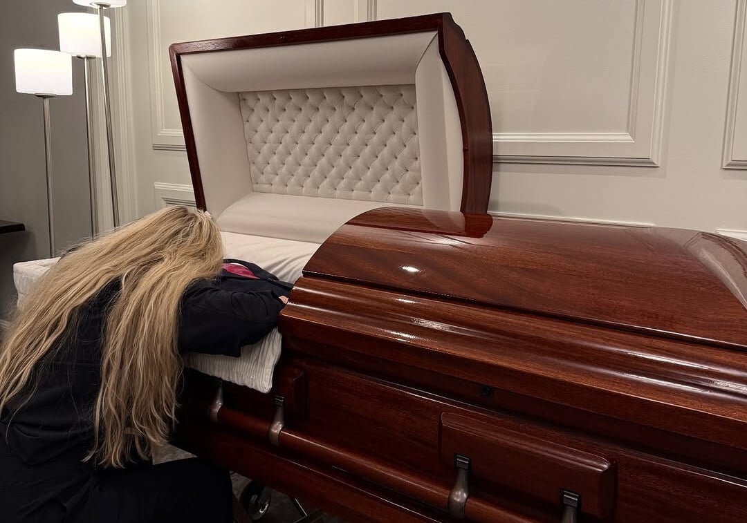 - Η χήρα του Τσάρλι Κερκ πάνω στο φέρετρό του. Η ανάρτηση της