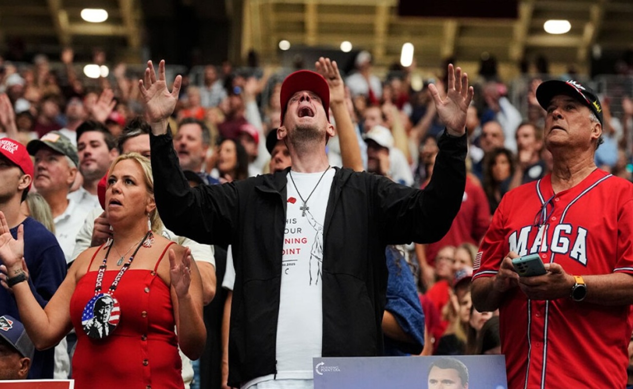 Με το άνοιγμα των πυλών, οι υποστηρικτές του Κερκ εισέρχονται στο State Farm Stadium υπό ενδελεχείς ελέγχους, προκειμένου να αποτίσουν φόρο τιμής στον άνθρωπο που θεωρείται εμβληματική μορφή του κινήματος MAGA. Η ουρά για την είσοδο εκτείνεται εκατοντάδες μέτρα, φτάνοντας έως και στους εξωτερικούς χώρους στάθμευσης.