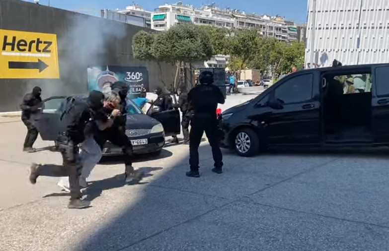 Η Ειδική Κατασταλτική Μονάδα (ΕΚΑΜ) της Ελληνικής Αστυνομίας προχώρησε σε άσκηση διαχείρισης σοβαρού περιστατικού ομηρίας, με θεαματική καταρρίχηση από κτίριο, στη νότια πύλη της ΔΕΘ, κερδίζοντας τις εντυπώσεις των επισκεπτών.