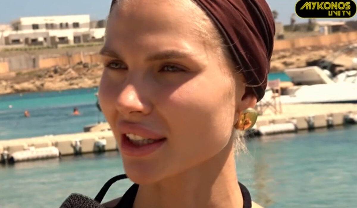 Σε ερώτηση για το αν της αρέσει η Μύκονος, αρκέστηκε να απαντήσει «Έτσι κι έτσι». Πρόσθεσε πως ήρθε με την παρέα της για δυο μέρες στο νησί.