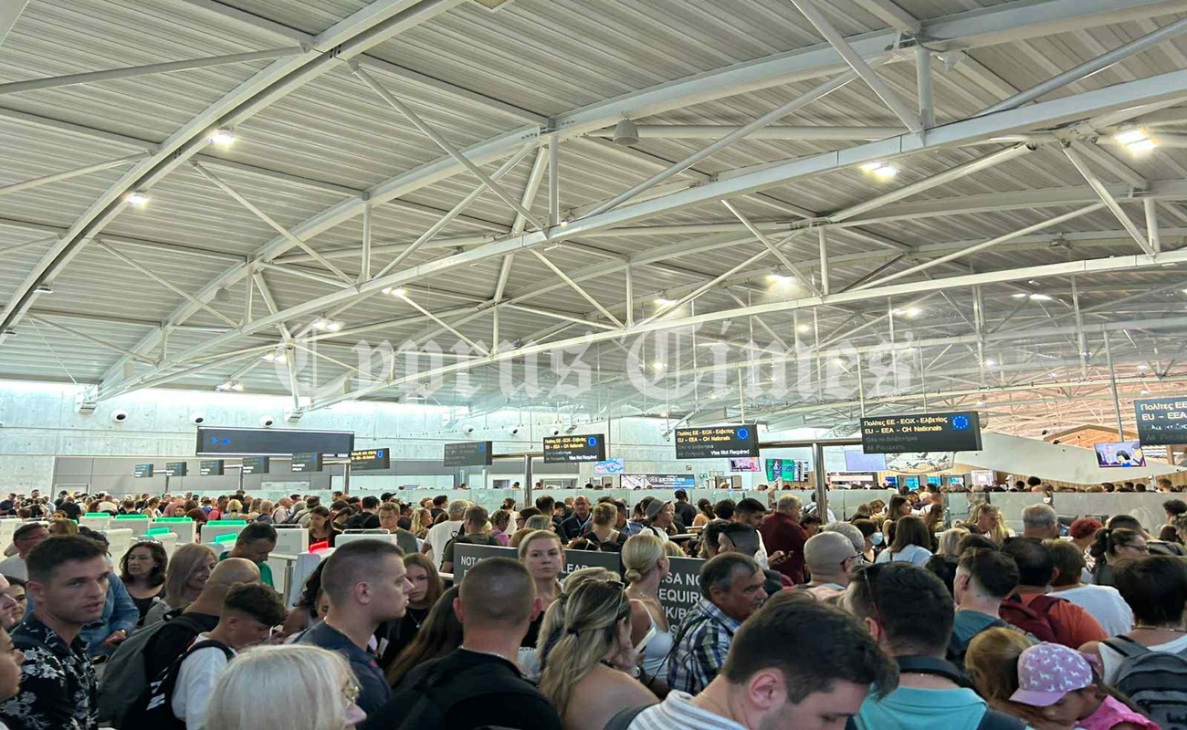 Το αδιαχώρητο στο αεροδρόμιο Λάρνακας με δεκάδες επιβάτες να αναμένουν σε ουρές στα σημεία ελέγχου.