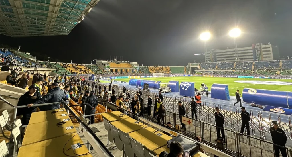 Caos absoluto en la entrada del estadio del Kairat Almaty.