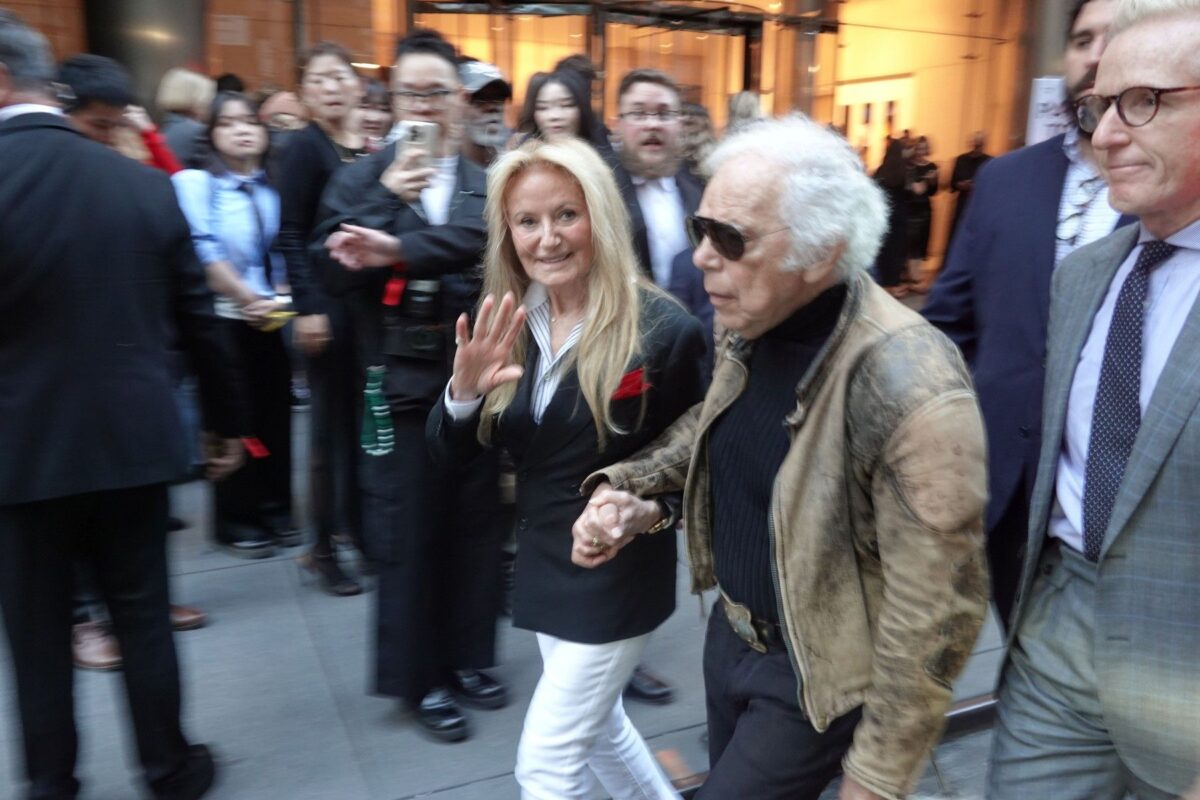 Ο θρυλικός σχεδιαστής Ραλφ Λόρεν, φορώντας τα μεγάλα του μαύρα γυαλιά, δεν άφηνε το χέρι της συζύγου του που τον βοηθούσε να σταθεροποιήσει το βήμα του.