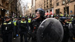 «Αυτές οι διαδηλώσεις περιλαμβάνουν ένα μείγμα ακραίας δεξιάς ιδεολογίας, αριστερών και (εν γένει) αντίθετων απόψεων, και λόγω της βίας που είδαμε στους δρόμους της Μελβούρνης πριν από δύο εβδομάδες, και των πληροφοριών μας που δείχνουν ότι αυτές οι ομάδες και πάλι έχουν σκοπό να συγκρουστούν, η Αστυνομία δεν είχε άλλη επιλογή από το να οργανώσει μια σημαντική επιχείρηση, ώστε να διασφαλίσουμε την ασφάλεια της κοινότητας και να κρατήσουμε αυτές τις ομάδες χωριστά».