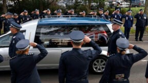 Εκατοντάδες συγκεντρώθηκαν στο Police Academy Memorial Chapel στο Glen Waverley για την κηδεία του Thompson, όπως και την περασμένη Παρασκευή για το «ύστατο χαίρε» προς τον de Waart-Hottart, με τιμές.