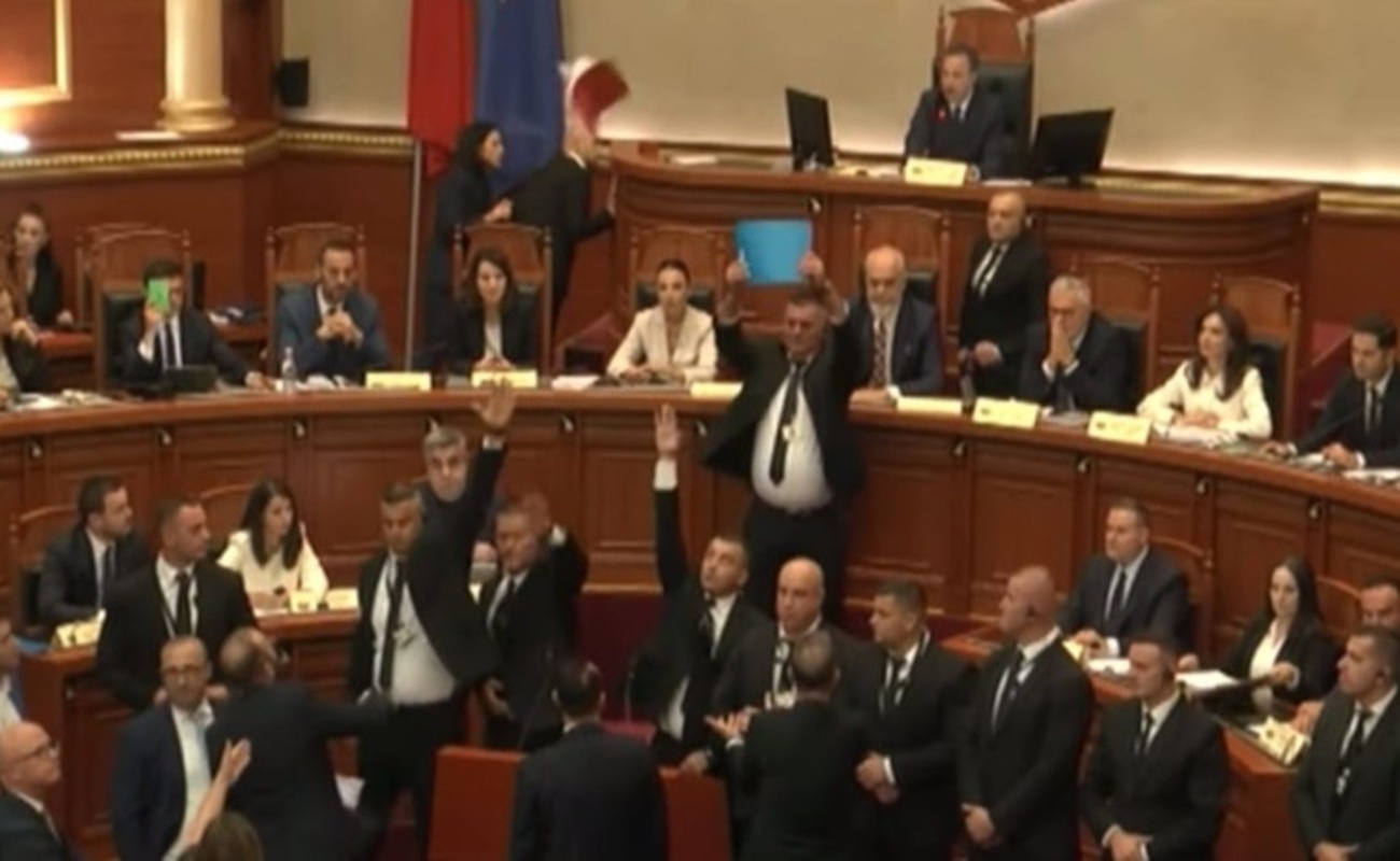 Οι εξελίξεις πυροδότησαν ακόμη μεγαλύτερες αντιδράσεις και καταγγελίες για παραβίαση του Κανονισμού. Ο πρώην υπουργός Δικαιοσύνης Γκασμέντ Μπάρντι και ο Φιντρέλ Κρέκα πέταξαν αρκετά αντίτυπα του Συντάγματος και του Κανονισμού της Βουλής προς τον Ράμα και τον πρόεδρο της Βουλής. Η συνεδρίαση διεκόπη με την παρέμβαση της φρουράς, που περικύκλωσε τον χώρο.