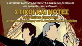 Ο Σύνδεσμος Ελλήνων Λογοτεχνών και Συγγραφέων Αυστραλίας, σε συνεργασία με την Κρητική Αδελφότητα Μελβούρνης και την Παγκρήτια Ένωση Μελβούρνης, σας προσκαλεί με ιδιαίτερη τιμή στην πολιτιστική εκδήλωση αφιερωμένη στους κορυφαίους Έλληνες συνθέτες Μάνο Χατζιδάκι και Μίκη Θεοδωράκη.