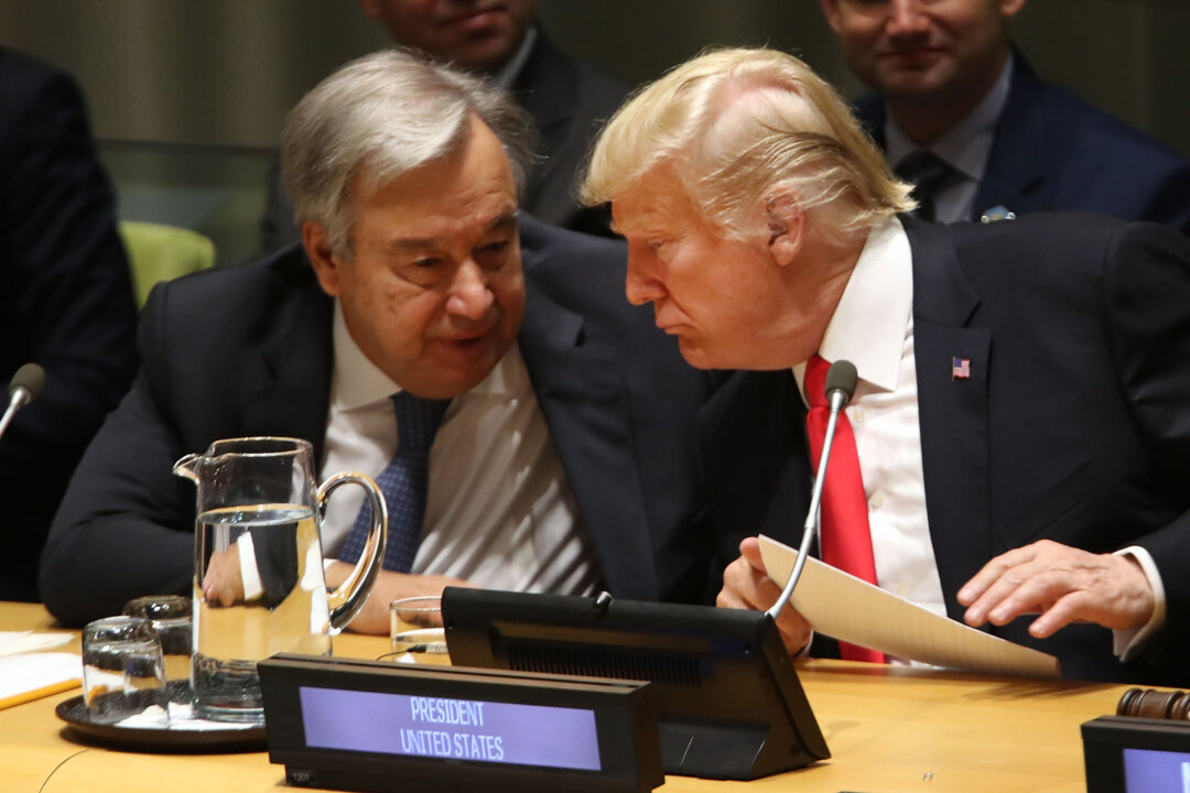 President Donald Trump meets with the U.N. Secretary-General António Guterres at 11:10 a.m. ET on Sept. 23. during the U.N. General Assembly.
