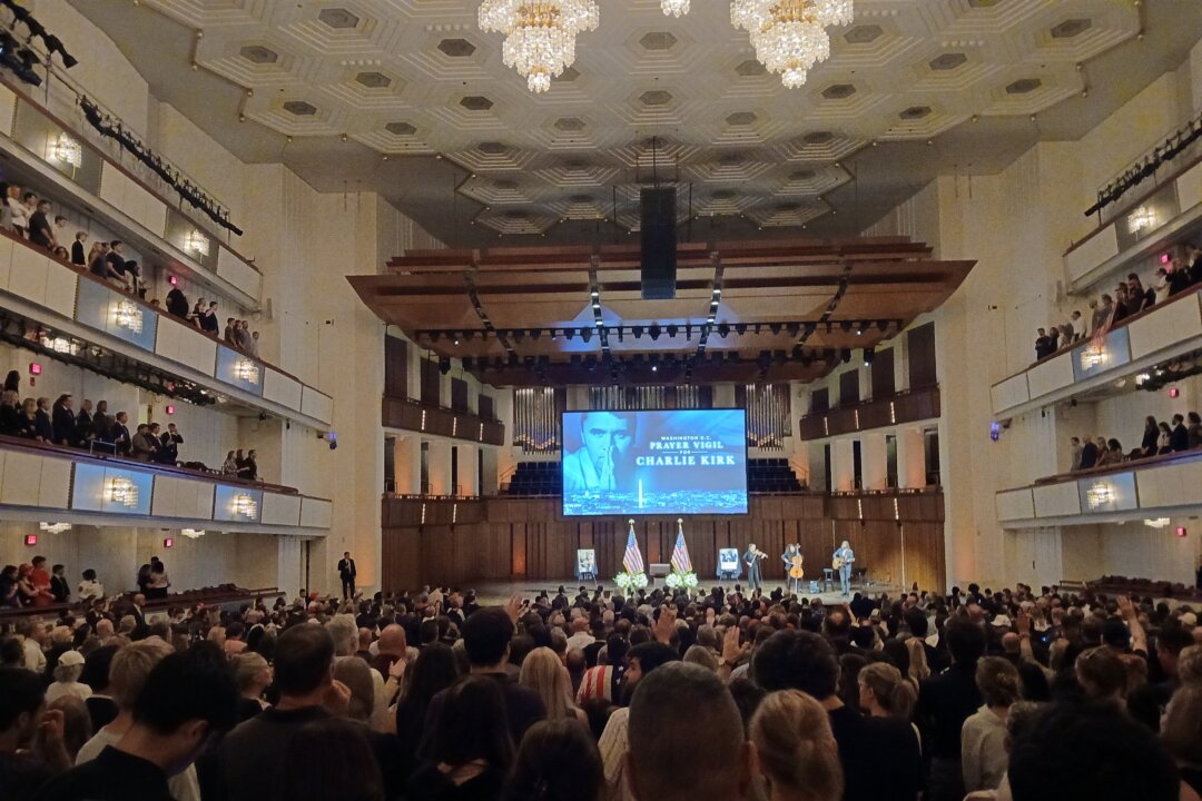 WASHINGTON—Thousands of people came together to remember Charlie Kirk and offer tearful tributes at the John F. Kennedy Center on Sunday.