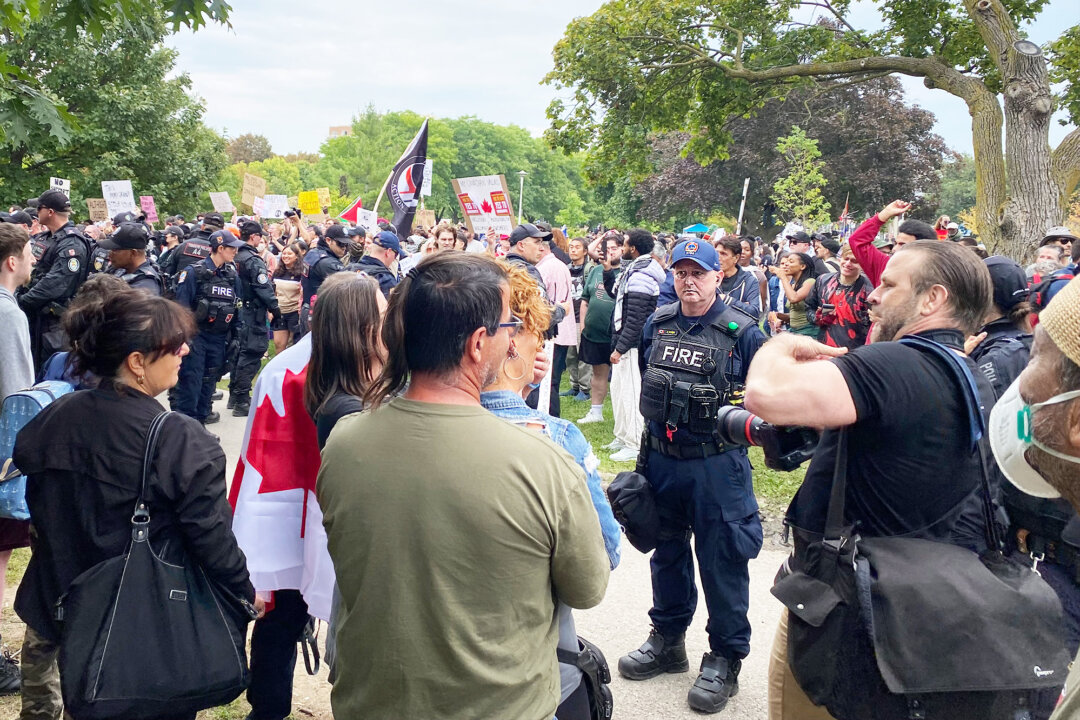 Police arrested 10 people at Toronto’s Christie Pits Park on Sept. 13 as a large rally against mass immigration and counter protests were held.