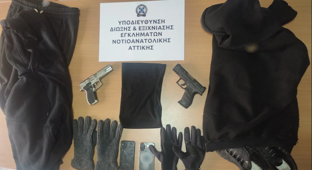 Στο πλαίσιο αυτό συνελήφθησαν βραδινές και πρωινές ώρες της 12 και 13 Οκτωβρίου 2025, στην περιοχή της Ηλιούπολης, από αστυνομικούς του Τμήματος Δίωξης και Εξιχνίασης Εγκλημάτων Ηλιούπολης και της Υποδιεύθυνσης Δίωξης και Εξιχνίασης Εγκλημάτων Νοτιοανατολικής Αττικής, αντίστοιχα, δύο ανήλικοι, ηλικίας 16 ετών, και σε βάρος τους σχηματίστηκε δικογραφία για ληστεία τετελεσμένη και σε απόπειρα κατά συναυτουργία και κατ’ εξακολούθηση και παράβαση της νομοθεσίας περί όπλων.