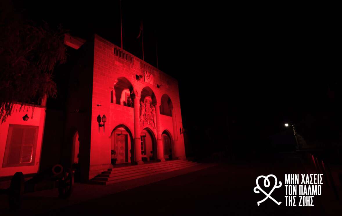Με αφορμή την Παγκόσμια Ημέρα Καρδιάς, το Προεδρικό Μέγαρο φωταγωγήθηκε στο κόκκινο, το χρώμα της καρδιάς, στέλνοντας ένα ηχηρό μήνυμα ευαισθητοποίησης για την προστασία της καρδιαγγειακής υγείας και την ανάγκη πρόληψης των καρδιαγγειακών νοσημάτων, που εξακολουθούν να αποτελούν την πρώτη αιτία θανάτου τόσο στην Κύπρο όσο και διεθνώς.