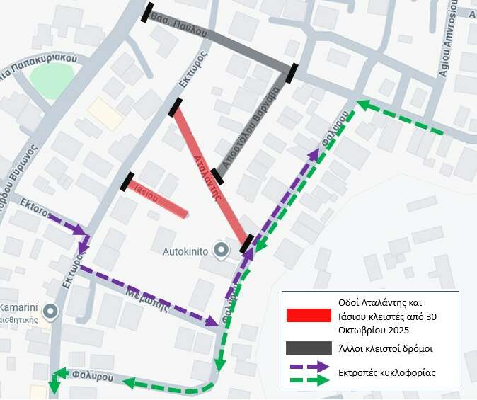 Οι εργασίες της Β’ Φάσης θα ξεκινήσουν στις 30 Οκτωβρίου 2025 και οι οδοί Αταλάντης και Ιάσιου θα παραμείνουν κλειστές για την τροχαία κίνηση για χρονικό διάστημα τριών (3) μηνών.