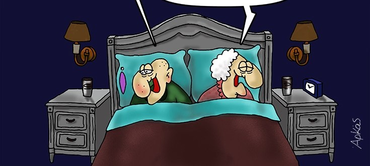 Για ακόμα μέρα μας καλημερίζει ο γνωστός σκιτσογράφος Αρκάς με τον δικό του τρόπο. Στο σημερινό σκίτσο βλέπουμε μια γυναίκα κι έναν άνδρα στο κρεβάτι να συνομιλούν.