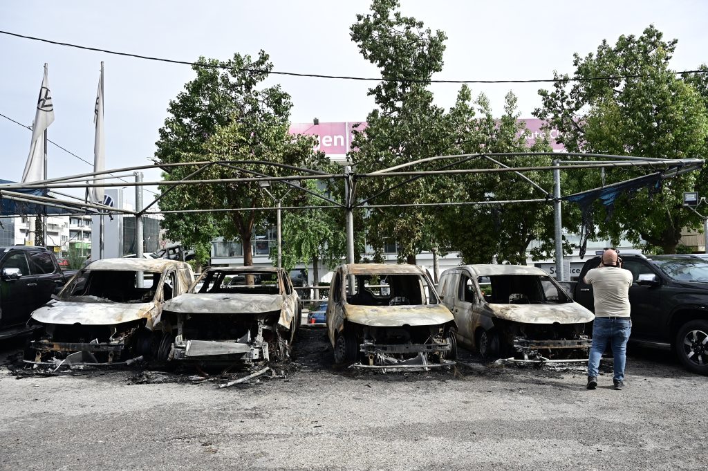 Κάμερα ασφαλείας κατέγραψε τη φωτιά που ξέσπασε μετά την εμπρηστική επίθεση που εξαπέλυσαν τρεις κουκουλοφόροι. Το βίντεο δείχνει τα οχήματα να έχουν παραδοθεί στις φλόγες, τόσο μπροστά από το κατάστημα, όσο και σε χώρο πλησίον του. Από την εμπρηστική επίθεση κάηκαν ολοσχερώς πέντε οχήματα και έχουν υποστεί εκτεταμένες ζημιές άλλα τέσσερα.