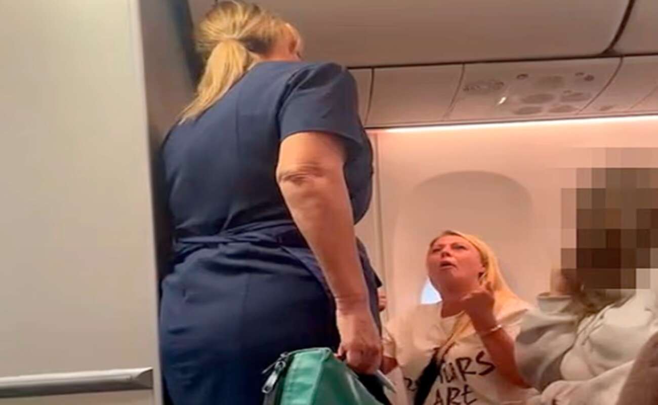 Η στιγμή που μεθυσμένη Βρετανίδα επιβάτις ουρλιάζει σε πτήση προς την Αίγυπτο – Ο πιλότος εξαναγκάστηκε σε προσγείωση στην Κρήτη – Ντροπιασμένο το παιδάκι της έκρυβε το πρόσωπό του – Βίντεο που κατέγραψαν επιβάτες δείχνουν τη γυναίκα να χειρονομεί, να βρίζει και να φωνάζει