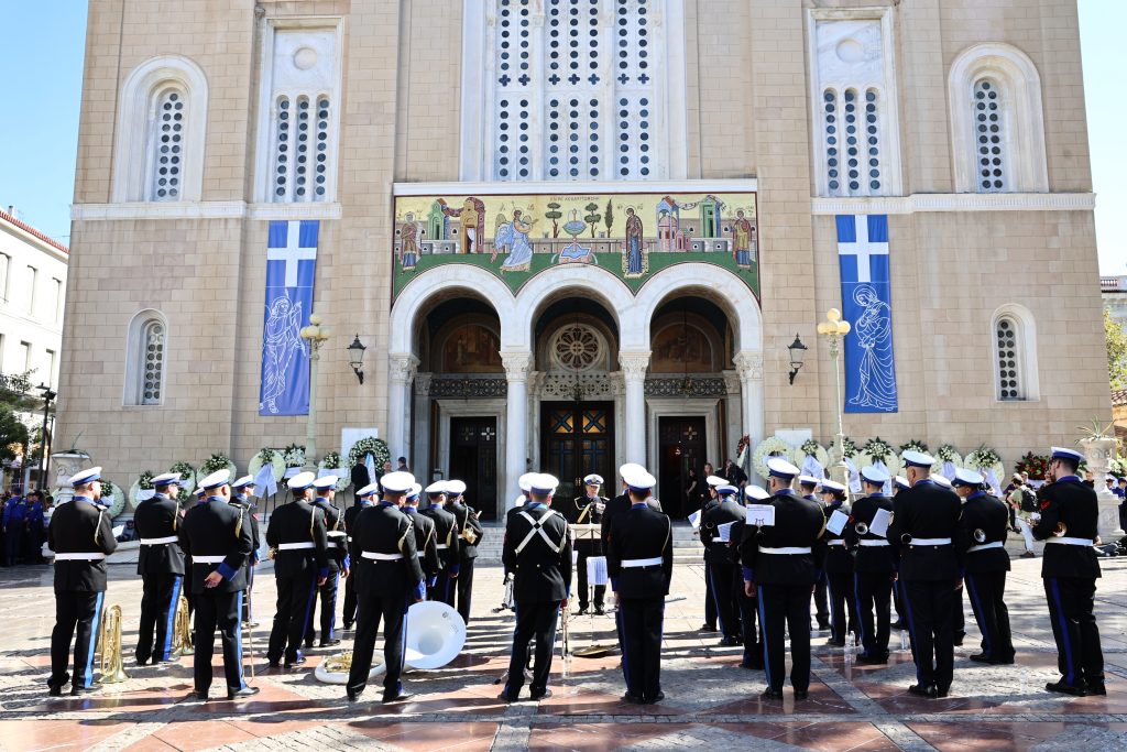 Ήχοι από αγαπημένα τραγούδια του Διονύση Σαββόπουλου συνόδευσαν το φέρετρο του σπουδαίου δημιουργού έξω από τη Μητρόπολη Αθηνών, με τη μπάντα του Πολεμικού Ναυτικού να παιανίζει μουσικές που σημάδεψαν γενιές.
