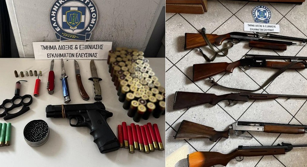 Ολόκληρο οπλοστάσιο εντοπίστηκε στο σπίτι 17χρονου μετά έρευνα της Αστυνομίας. Είχε προηγηθεί επεισόδιο στο προαύλιο σχολείου στην Ελευσίνα όπου ο 17χρονος είχε απειλήσει με πιστόλι έναν συμμαθητή του.
