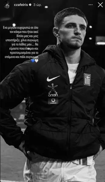 «Ένα μεγάλο ευχαριστώ σε όλο τον κόσμο που ήταν εκεί δίπλα μας και μας υποστήριξε, χίλια συγγνώμη για το λάθος μου… Θα είμαστε πιο έτοιμοι και προετοιμασμένοι για το επόμενο και πάλι συγγνώμη», έγραψε ο Ζαφείρης.
