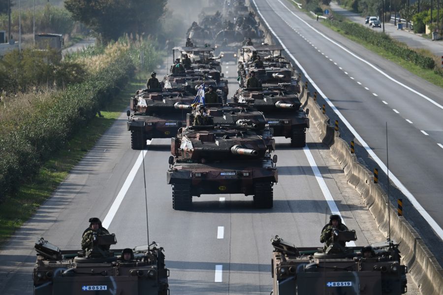 Από τανκς, οχήματα υποστήριξης και στρατιωτικό εξοπλισμό γέμισε την Πέμπτη η Εθνική Οδός Θεσσαλονίκης-Νέων Μουδανιών στη Χαλκιδική, στα πλαίσια της πρόβας της στρατιωτικής παρέλασης της 28ης Οκτωβρίου στη Θεσσαλονίκη.