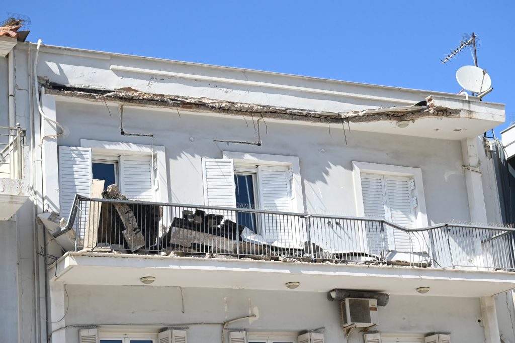Ωστόσο, καταπλακώθηκαν αυτοκίνητα που βρίσκονταν κάτω από το μπαλκόνι.
