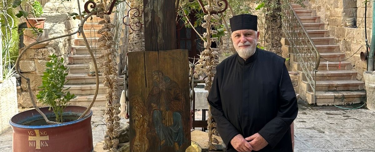 Στα χέρια του κρατά τον Τίμιο Σταυρό, έναν απλό ξύλινο σταυρό μέσα σε ασημόδετη θήκη. Είναι εκείνος που κάποτε φύλαγε στα χέρια της η θεία του, η Ειρήνη από τα Χανιά, γυναίκα προσευχής και μυστικής αγιοσύνης με το χάρισμα του θεραπεύειν. Του τον κληροδότησε όχι ως δώρο, αλλά ως μυστικό φυλαχτό πίστης. Λένε πως τον ευλόγησε ο Θεός με δάκρυα που δεν αγγίζουν τη γη, μόνο ανεβαίνουν εκεί όπου οι άγγελοι τα προσφέρουν ως προσευχή. Από τότε ο Σταυρός δεν λάμπει, αναπνέει. Πάλλεται πάνω στο στήθος του και στο σώμα των πιστών, σαν να γνωρίζει τον ρυθμό της καρδιάς τους, σαν να αφουγκράζεται κάθε προσευχή πριν ειπωθεί.