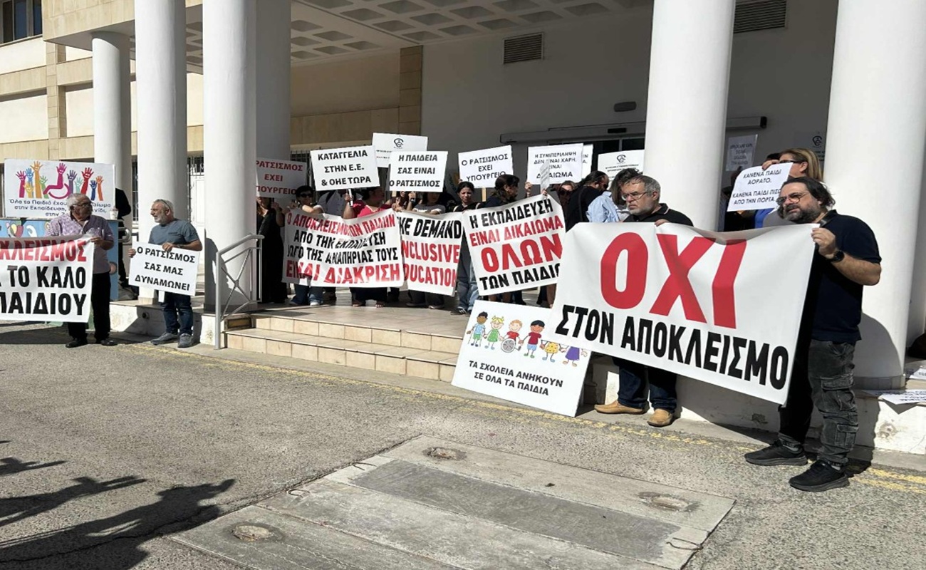 Σε εξέλιξη βρίσκεται η εκδήλωση διαμαρτυρίας για τα δικαιώματα παιδιών με αναπηρία που πραγματοποιείται έξω από το Υπουργείο Παιδείας στη Λευκωσία.