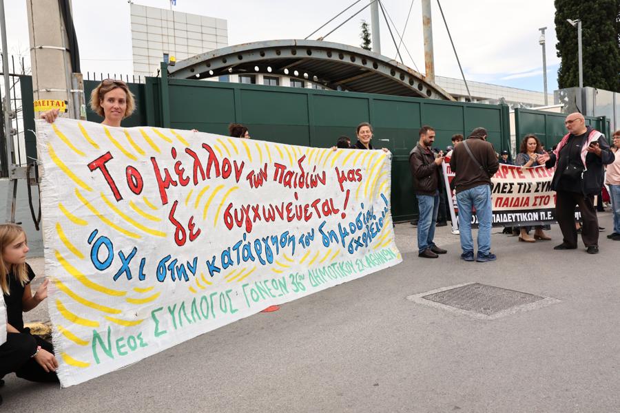 Συγκέντρωση διαμαρτυρίας δασκάλων και γονέων πραγματοποιείται έξω από το υπουργείο Παιδείας αυτή την ώρα.