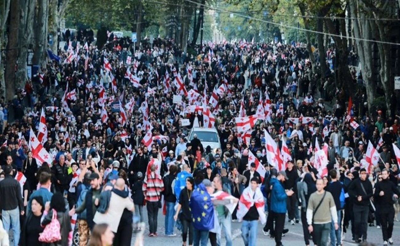 Νωρίτερα, χιλιάδες υποστηρικτές της αντιπολίτευσης κρατώντας εθνικές σημαίες της Γεωργίας συγκεντρώθηκαν στο κέντρο της γεωργιανής πρωτεύουσας το Σάββατο 4/10, μποϊκοτάροντας τις δημοτικές εκλογές και ζητώντας την απελευθέρωση των πολιτικών αντιπάλων.