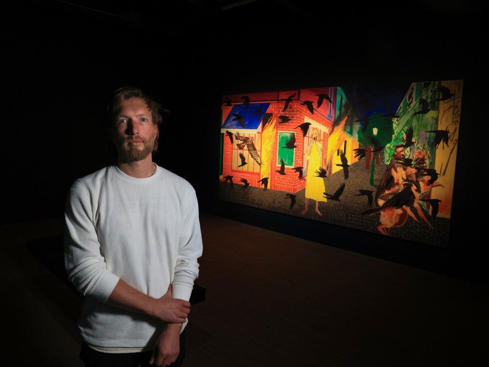 Erik Olson’s 2021 oil on canvas Kreuzkerrenech (The Crossroads) is a scene of chaos. Read More