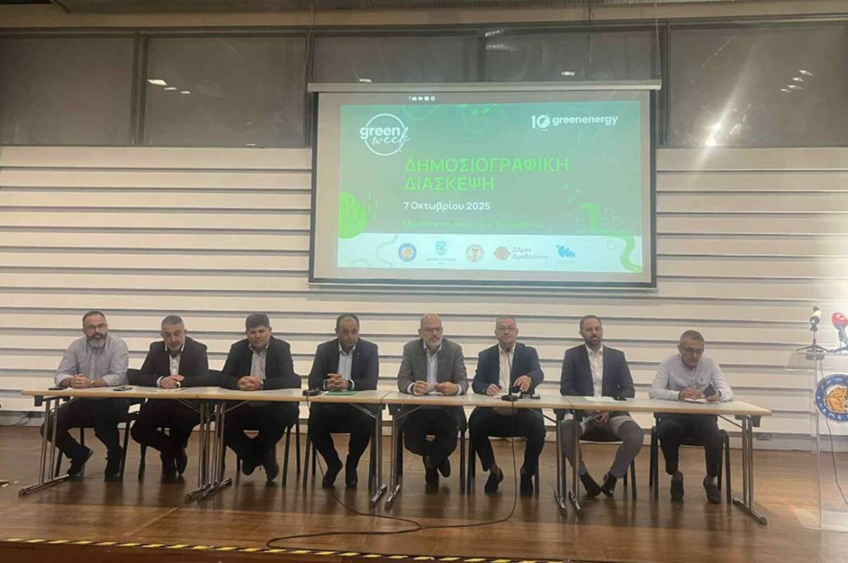 Ο Όμιλος Green Energy, o Δήμος της Επαρχίας Λεμεσού και ο Επαρχιακός Οργανισμός Αυτοδιοίκησης Λεμεσού πραγματοποίησαν σήμερα στο Πολιτιστικό Κέντρο «Πάνος Σολομωνίδης», τη Δημοσιογραφική Διάσκεψη ενόψει της Πράσινης Εβδομάδας (Green Week) 2025, η οποία θα διεξαχθεί από τις 13 έως τις 19 Οκτωβρίου.