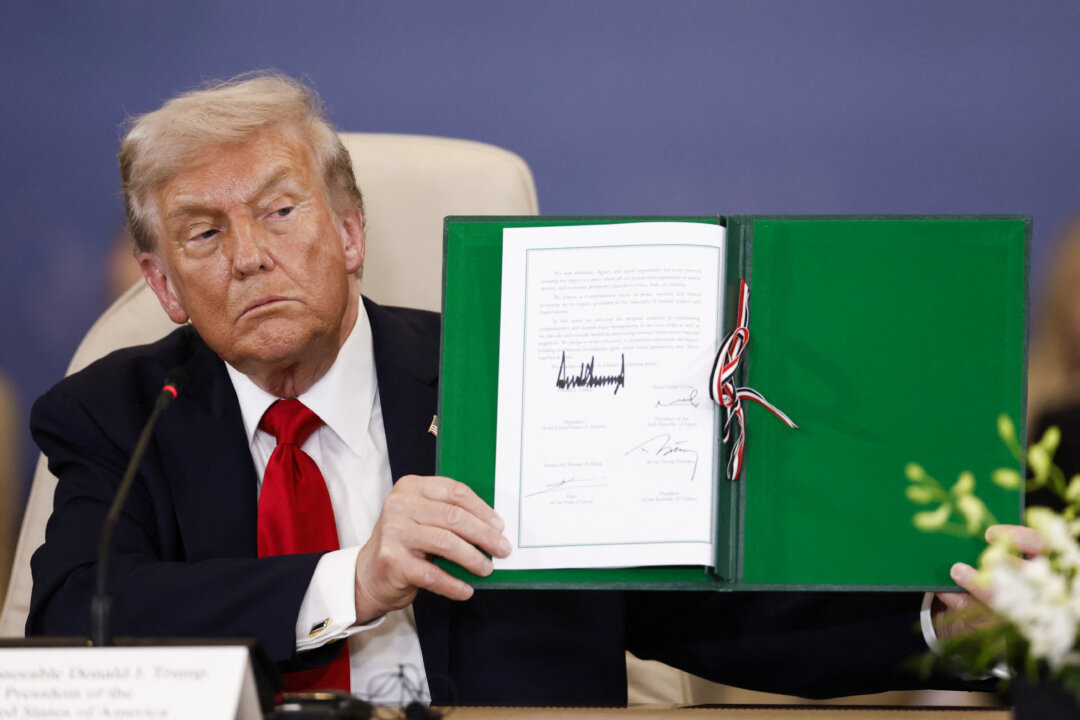 World leaders applauded U.S. President Donald Trump on Oct. 13 for mediating a deal between Israel and the Hamas terrorist group to end the war in Gaza between the two sides.