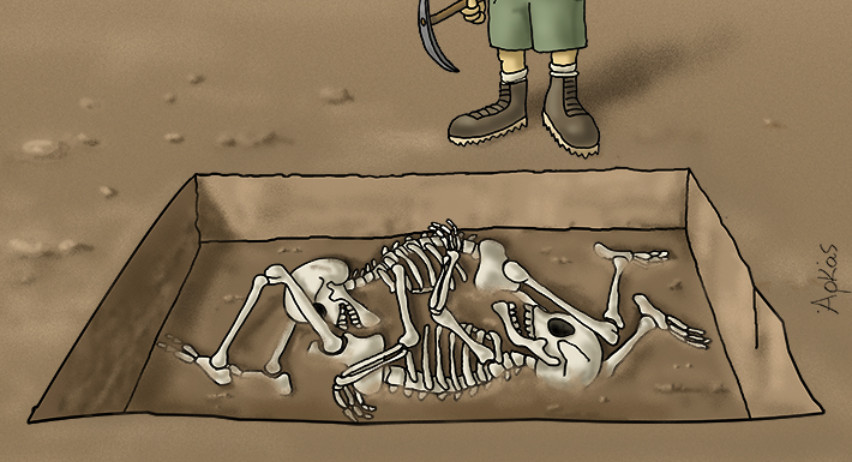 Με ακόμη ένα αιχμηρό και καίριο σχόλιο επιστρέφει ο Αρκάς, αυτή τη φορά μέσα από μια χιουμοριστική «βουτιά» στον κόσμο της αρχαιολογίας. Στο νέο του σκίτσο, ένας αρχαιολόγος στέκεται μπροστά σε έναν φρεσκοανακαλυφθέντα τάφο, μέσα στον οποίο βρίσκονται δύο σκελετοί. Με ύφος προβληματισμού, ο ερευνητής παρατηρεί το εύρημα και μονολογεί: «Άντε τώρα να ανακοινώσεις ότι αυτός ο τάφος είναι του 69 π.Χ.».