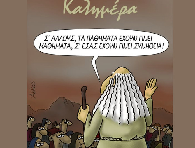 Το σκίτσο του Αρκά δεν είναι απλώς χιουμοριστικό· είναι ένας καθρέφτης. Μας προκαλεί να αναρωτηθούμε: πόσα από τα «παθήματά» μας τα μετατρέψαμε σε «μαθήματα» και πόσα τα κρατάμε σαν παλιές, γνώριμες συνήθειες; Γιατί συχνά δεν φοβόμαστε τόσο το λάθος, όσο την αλλαγή που θα μας απομακρύνει απ’ αυτό.