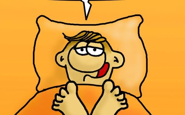 Ο Αρκάς στο σημερινό σκίτσο του μας δείχνει τον μικρό Θανασάκη, να κάθεται ξαπλωμένος στο κρεβάτι και να λέει: «Θσπίτι, κθάπλεθ και τηγανητέθ πατάτεθ».