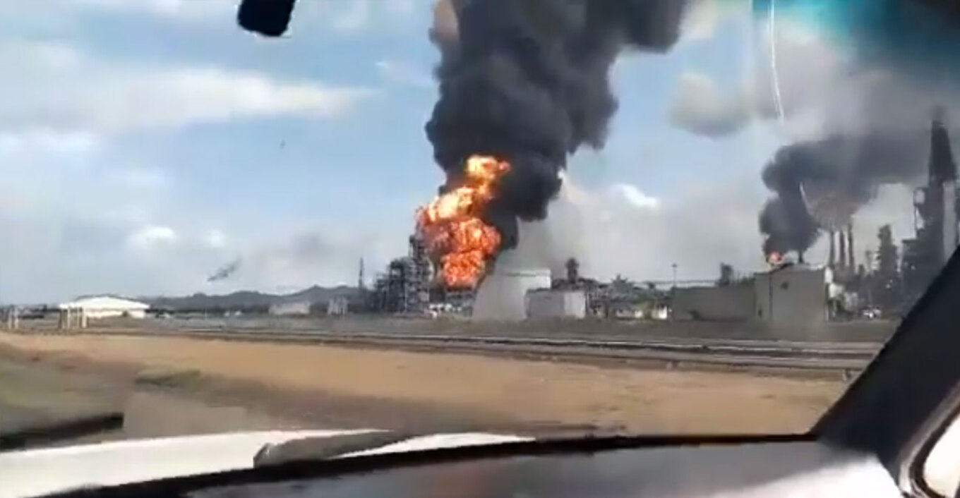 The explosion was heard near the plant’s distillation column, and the flames possibly spread to a nearby oil processing plant.