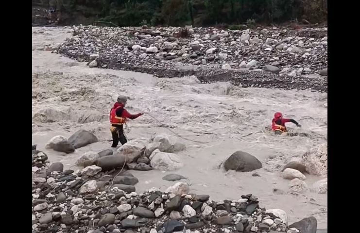 Οι άνδρες της ΕΜΑΚ στις προσπάθειες τους να παρέχουν βοήθεια διακινδυνεύουν ακόμη και να τραυματιστούν σοβαρά, καθώς όπως φαίνεται και στο βίντεο ο ορμητικός χείμαρρος παρασύρει τον διασώστη στην προσπάθειά του να τον διασχίσει.