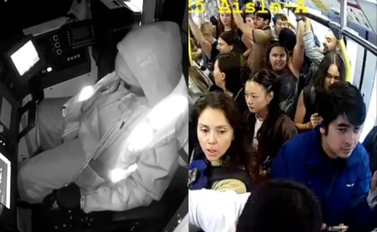 Στα ίδια πλάνα φαίνεται ότι το ταρακούνημα ξύπνησε την οδηγό, η οποία πάτησε άμεσα φρένο για να σταματήσει το τρένο. Στη συνέχεια, δε, άνοιξε την πόρτα της καμπίνας της και κάλεσε τους επιβάτες να «χαλαρώσουν». «Λυπάμαι. Χαλαρώστε, χαλαρώστε, χαλαρώστε. Δεν συγκρουστήκαμε. Χαλαρώστε» ακούγεται να λέει η έντρομη οδηγός.