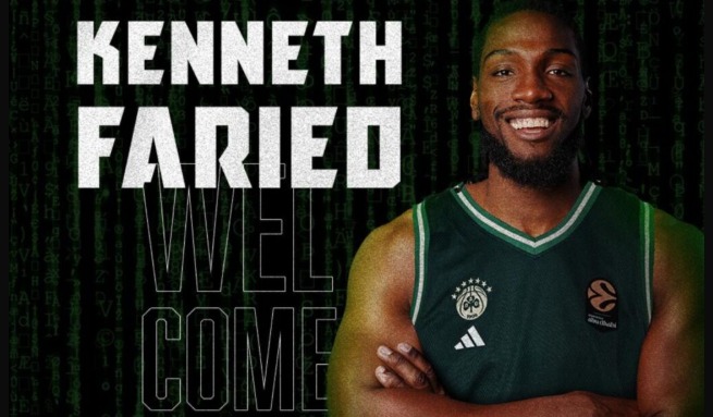 «Η ΚΑΕ Παναθηναϊκός AKTOR ανακοινώνει την απόκτηση του Κένεθ Φαρίντ, ο οποίος υπέγραψε συμβόλαιο δύο μηνών.