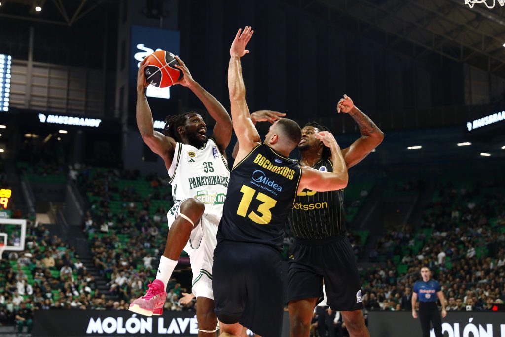 Ο Εργκίν Αταμάν παρέταξε την ίδια πεντάδα που χρησιμοποίησε στη Μαδρίτη (Σορτς, Ναν, Ρογκαβόπουλος, Ερνανγκόμεθ, Φαρίντ) και ο Παναθηναϊκός μπήκε δυνατά, ελέγχοντας τον ρυθμό μέσα από την άμυνα και το παιχνίδι κοντά στο καλάθι. Το «τριφύλλι» προηγήθηκε 13-6 στο πεντάλεπτο, όμως ο Άρης απάντησε με Χάρελ και Νουά (13-11). Η περιφερειακή παραγωγή των Ρογκαβόπουλου και Γκραντ έδωσε ξανά ρυθμό στους γηπεδούχους, που έκλεισαν την πρώτη περίοδο στο 23-15, παρά την κακή αναλογία ασίστ–λαθών (4/5).
